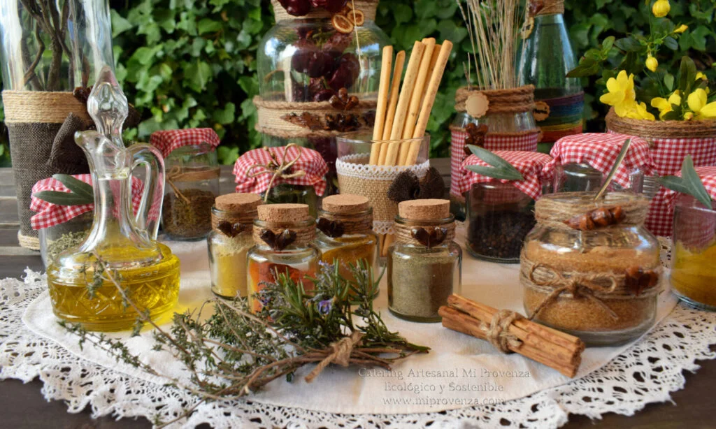 Utilizamos productos de cercanía, de temporada, queremos ser respetuosos con el entorno, reciclando y sacándole una segunda vida a envases como tarros de cristal transformados en jarrones, porta velas, latas de tomate que pasan a ser porta lápices para escritorio o porta utensilios de cocina…etc